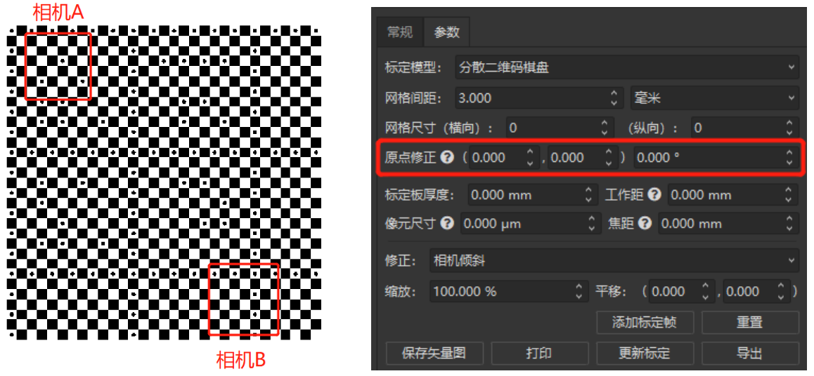 如上圖所示,用戶(hù)通過(guò)輸入網(wǎng)格間距、尺寸、原點(diǎn)修正等信息,可以將多個(gè)相機標定在同一坐標系內,實(shí)現多個(gè)相機的聯(lián)合標定,從而計算出兩個(gè)相機內任意兩點(diǎn)或者其他特征的距離。