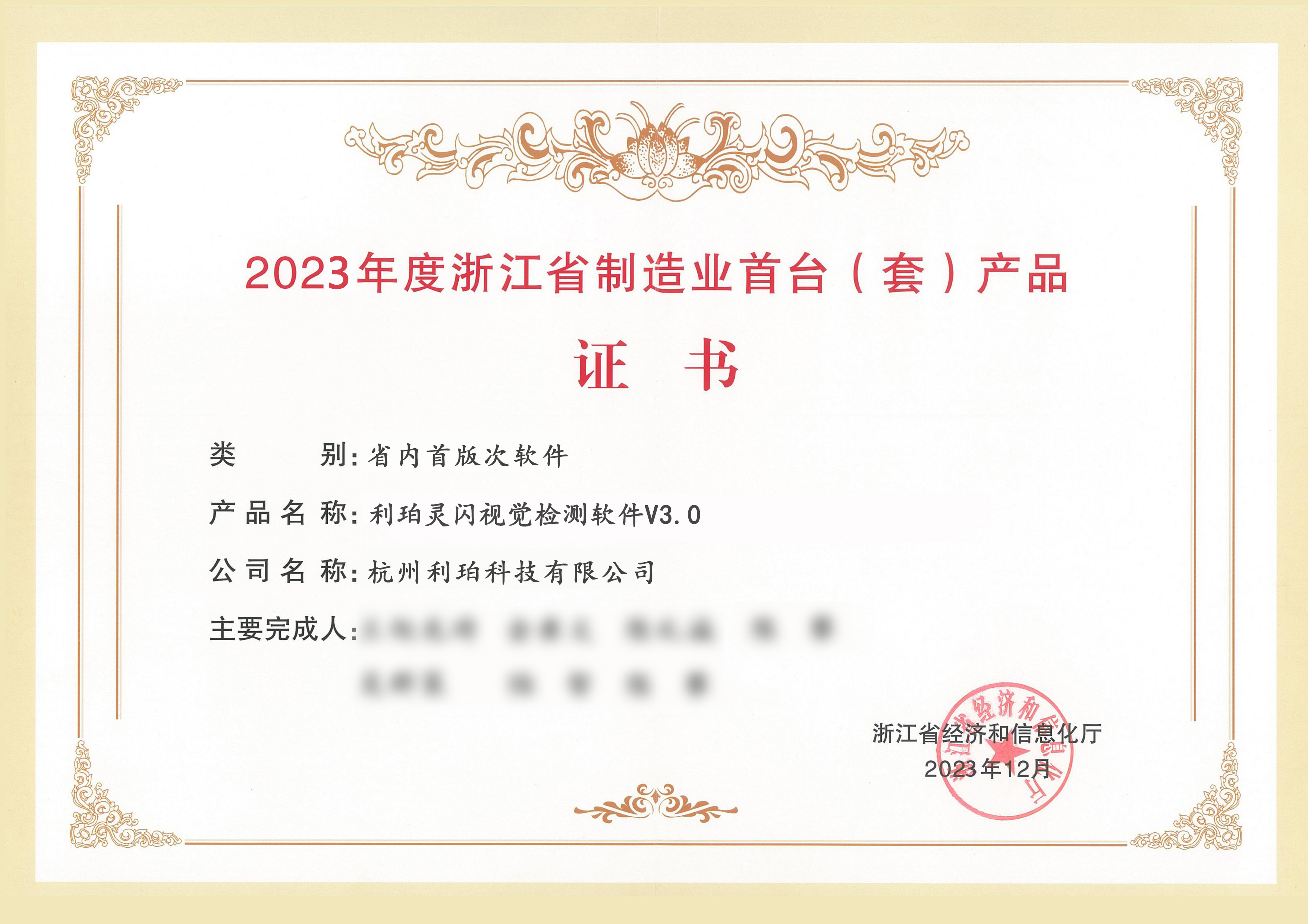 2023年度浙江省制造業(yè)首臺(套)產(chǎn)品證書(shū)