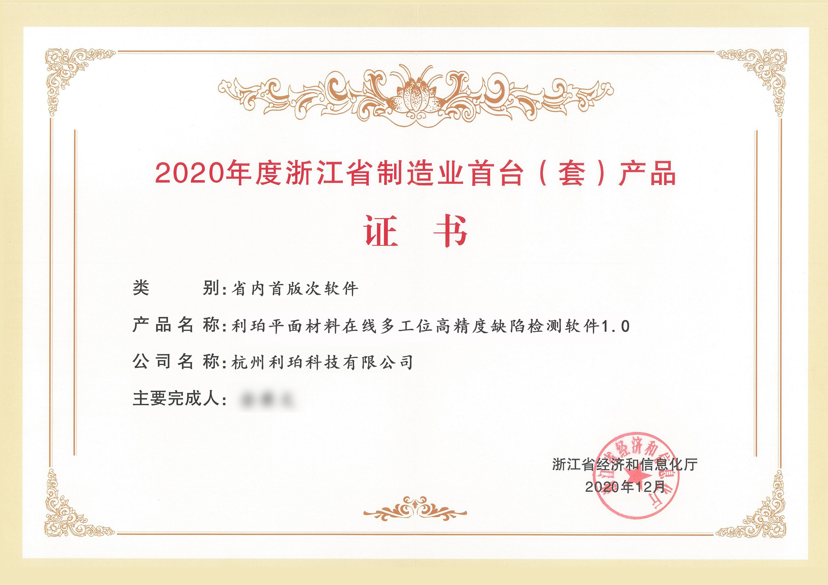 2020年度浙江省制造業(yè)首臺(套)產(chǎn)品證書(shū)-省內首版次軟件...