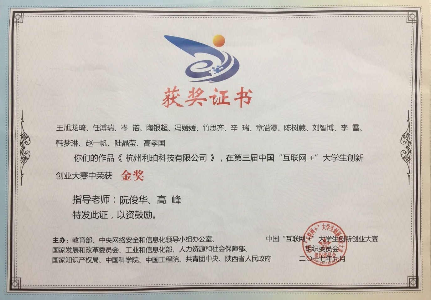 中國“互聯(lián)網(wǎng)+”大學(xué)生創(chuàng )新創(chuàng )業(yè)大賽金獎